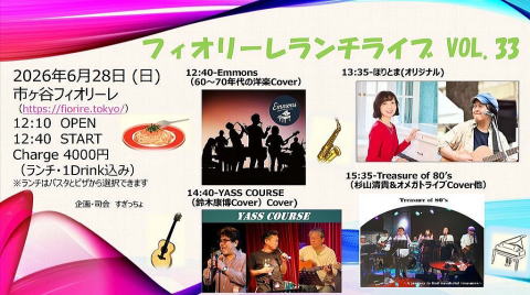 2026/06/28(日)杉山清貴&オメガトライブ他のカバーバンド「Treasure of 80's(トレハチ)」4thライブを市ヶ谷フィオリーレにて![]()
