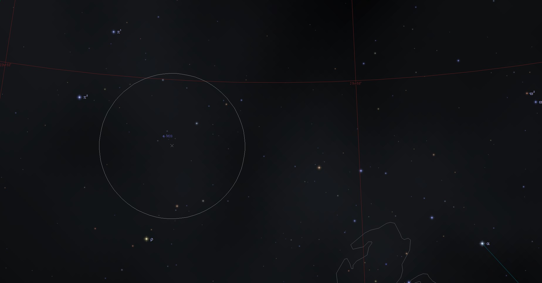 | 天体メモ | はくちょう座の2つのメシエ天体(M29・M39)のうちのひとつ。あまり有名ではないが大型の散開星団。30個程度の星々。 |