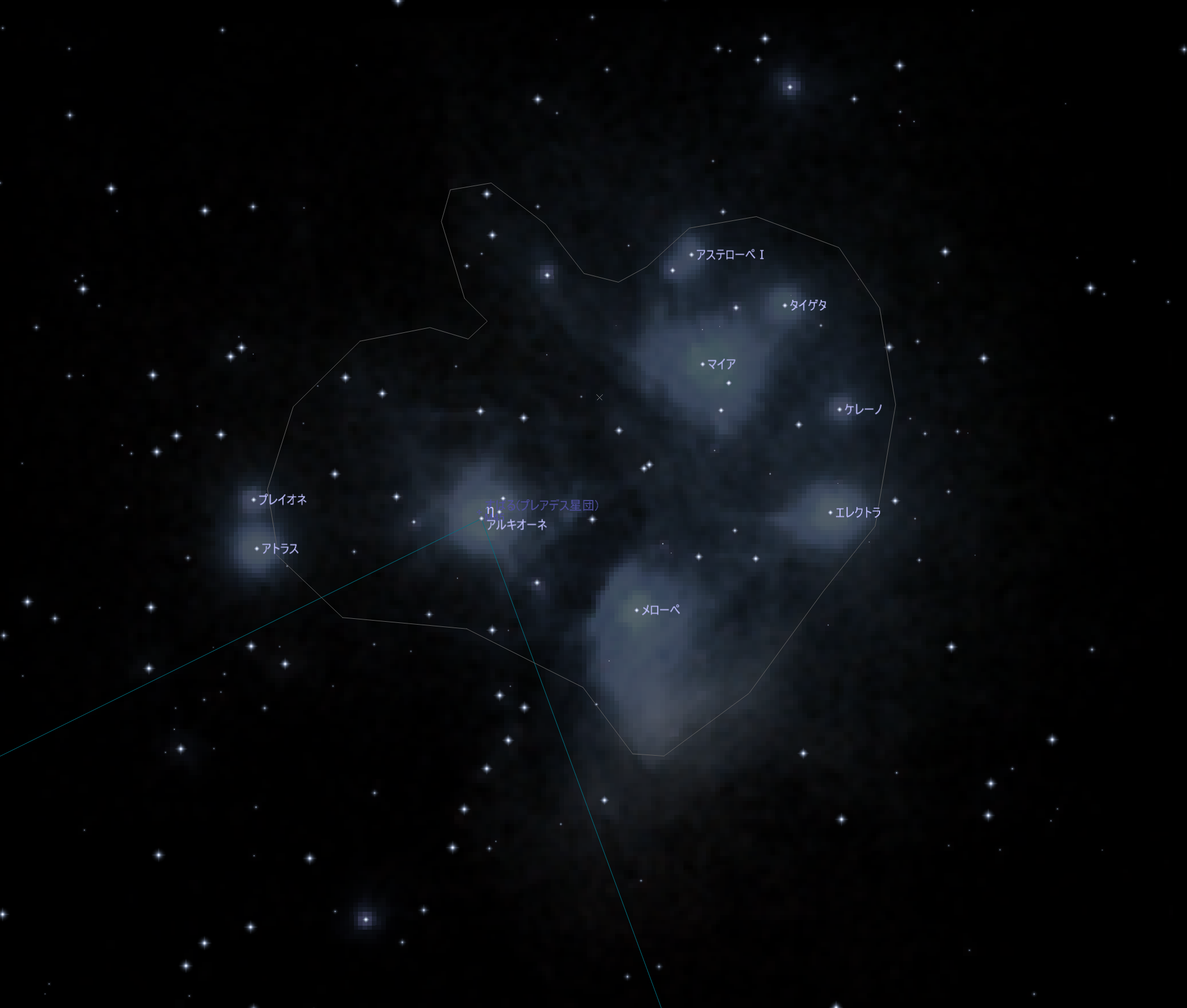 | 天体メモ | 大変有名な「すばる」、またはプレアデス星団のこと。肉眼では6個~7個の星が見えるとされている。 |