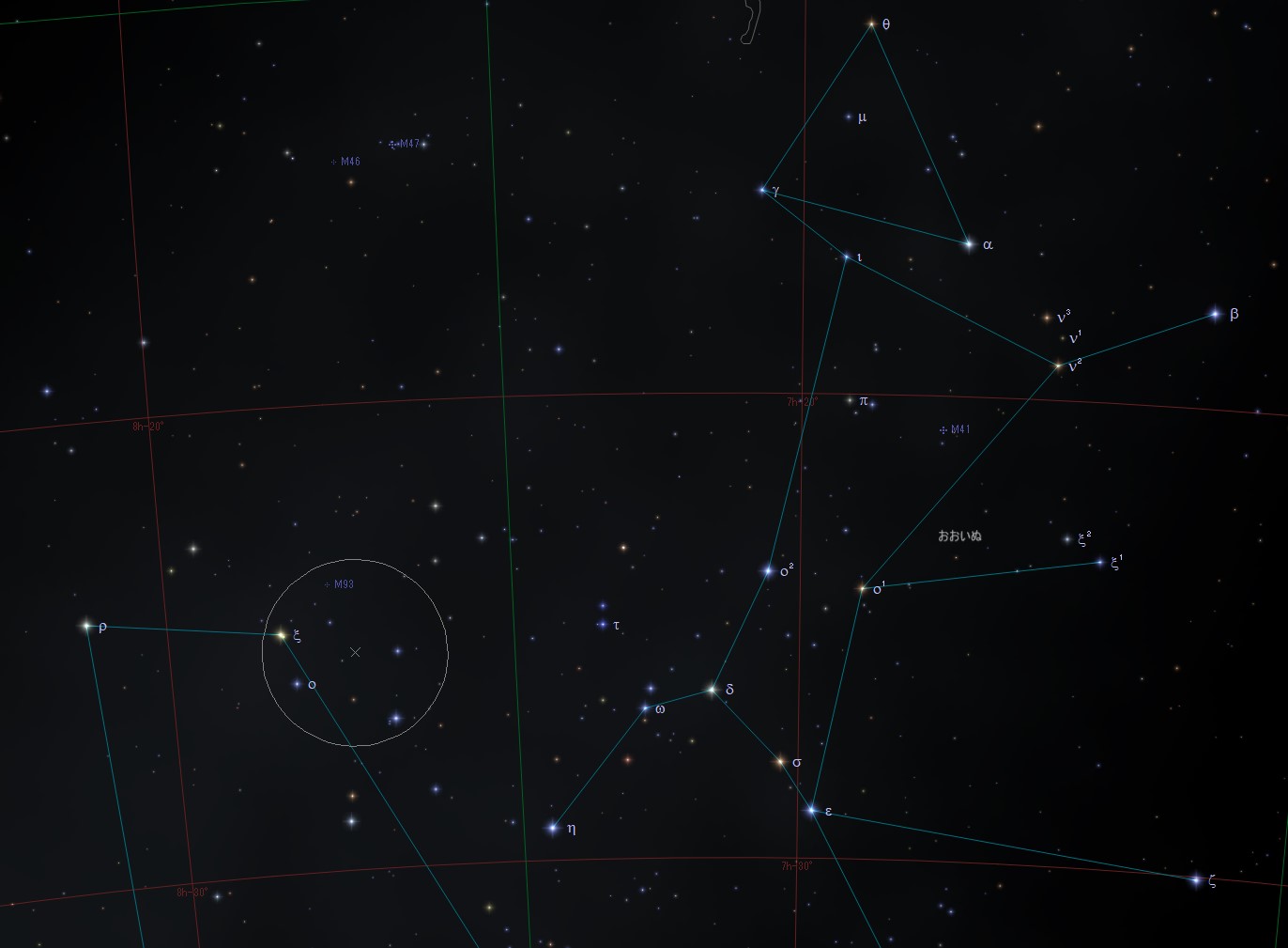 | 天体メモ | シリウスの南4度にある、大型の散開星団。 |
