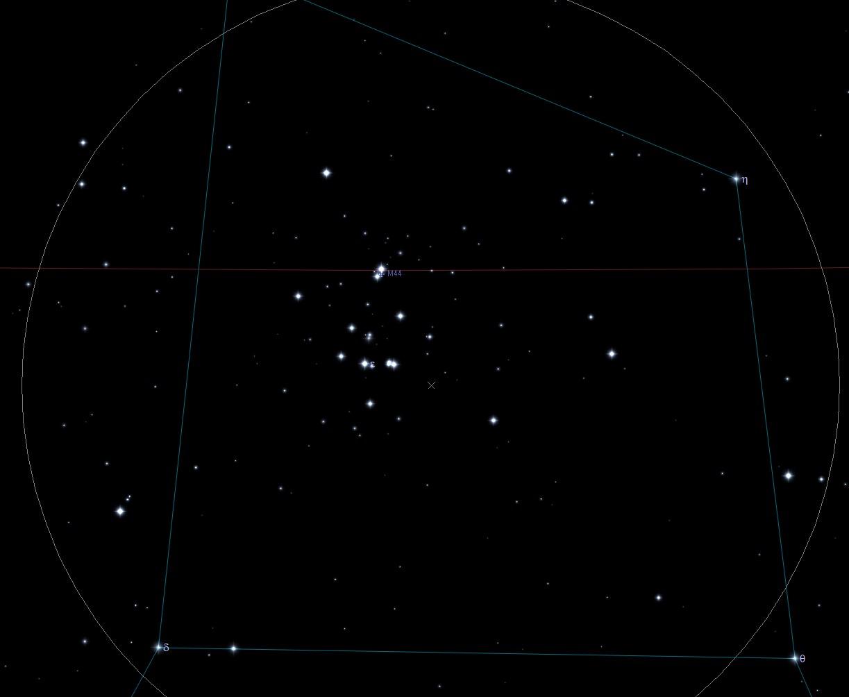 | 天体メモ | かに座の甲羅の上にある、大変大型で有名な散開星団。 |